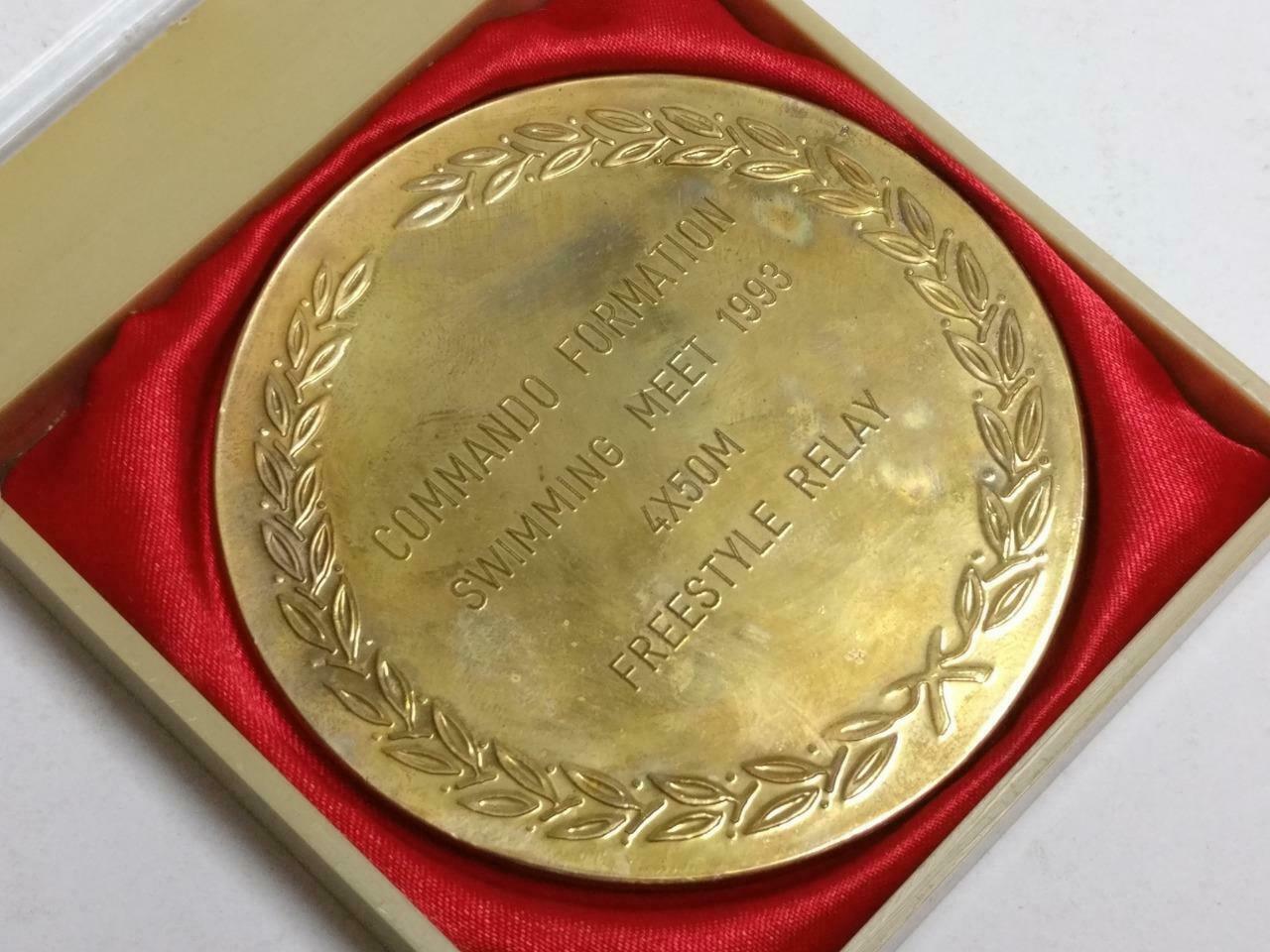 1993 Singapore Armed Forces Commando Swimming Gold Tone Medal w/ Case (C100)