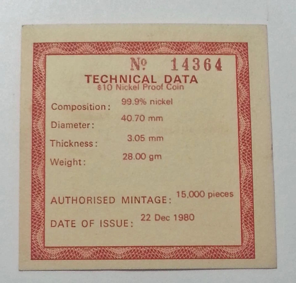 CH888 Singapore Satellite 1980 $10 Nickel Proof Coin with Box & Cert (C519)