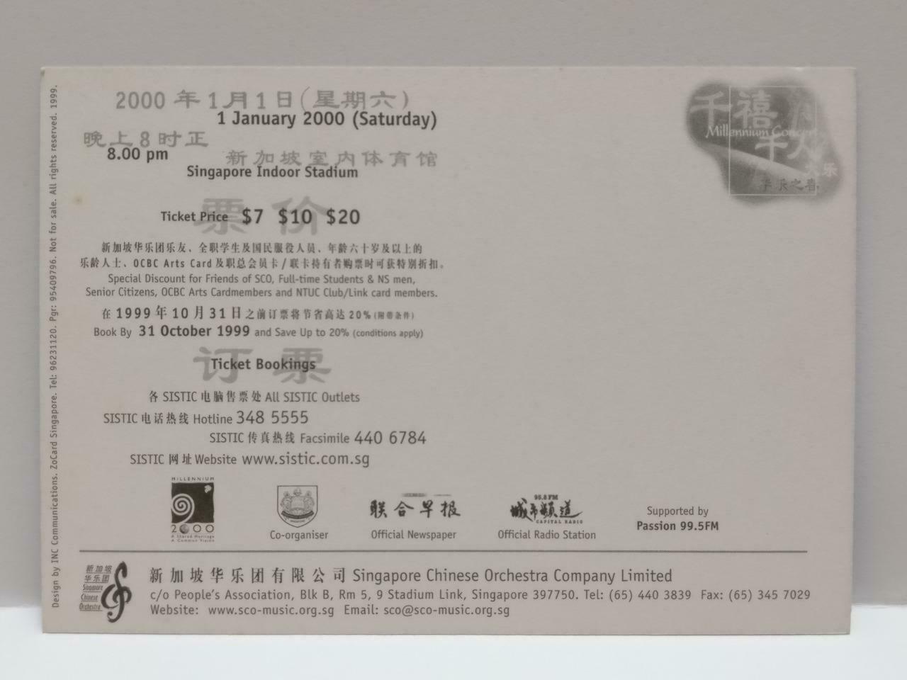 LUCKYPIGEON888 Singapore Chinese Orchestra 华乐之春 Conductor 1999 Postcard (E0121)