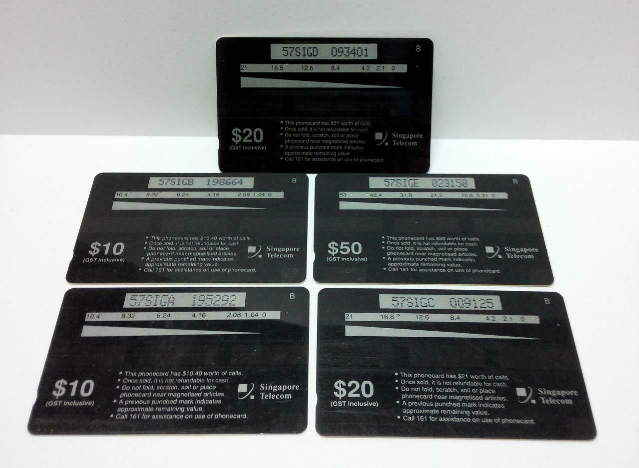 Used Vintage Singapore Phone Cards x5 Asean Chinese Art Painting Drawings (A413)