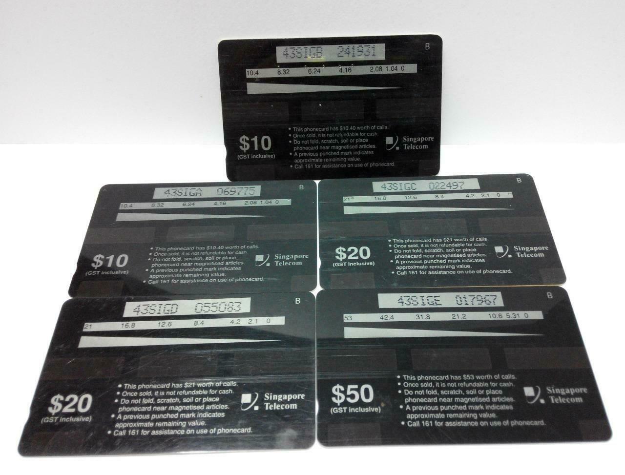 Used Vintage Singapore Phone Cards x5 Butterfly Yellow Glassy Tiger (A427)