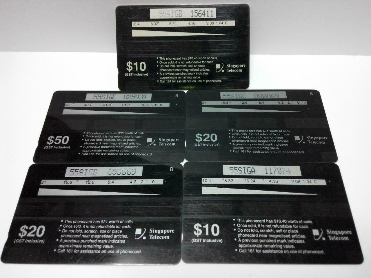 Used Vintage Singapore Phone Cards x5 Koala Sea Otta Raccoons Martens (A428)
