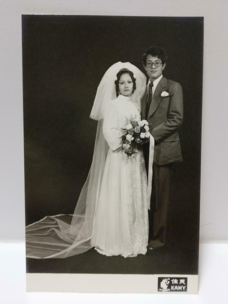 Vintage Asian Chinese Wedding Standing Couple Studio Portrait B&W Photo (P346)