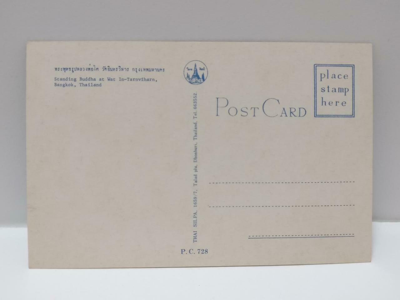 Vintage Thailand Bangkok Standing Buddha At Wat In-Tarnviharn Postcard (P704)